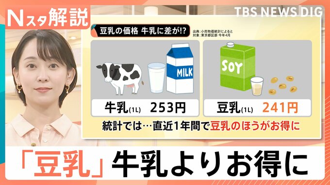 買い物などで見かけるお値段から、世の中の動きを読み解いていく「きょうのお値段」。今回は、実は牛乳の価格を下回ってるという豆乳の価格についてです。