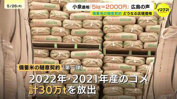 小泉農林水産大臣は「随意契約」で売り渡す備蓄米について、大手スーパーなどを対象に26日から先着順で契約を開始すると発表しました。5キロ=2000円と発言をくり返す小泉大臣ですが、広島のみなさんは、どれくらい期待しているのでしょうか?