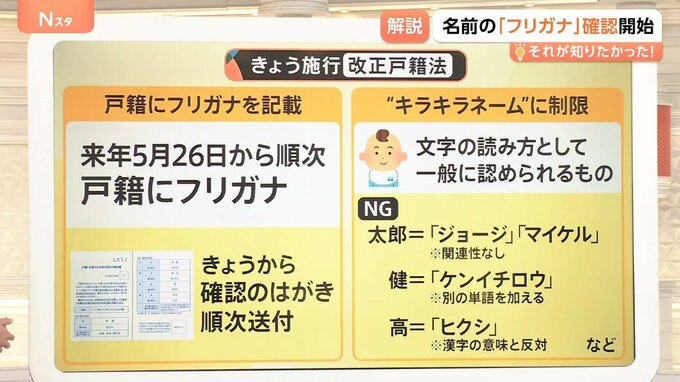 ▼2026年5月26日から順次、戸籍にフリガナが記載される、▼“キラキラネーム”に制限がかかることです。