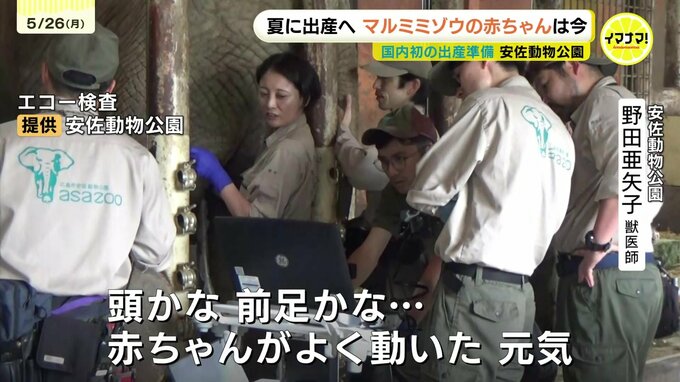 広島市安佐動物公園のマルミミゾウのメイが、早ければ8月にも国内初の出産を迎えます。今月21日、メイの妊娠の状態を調べるエコー検査があり、元気に動く赤ちゃんの様子が確認できました。