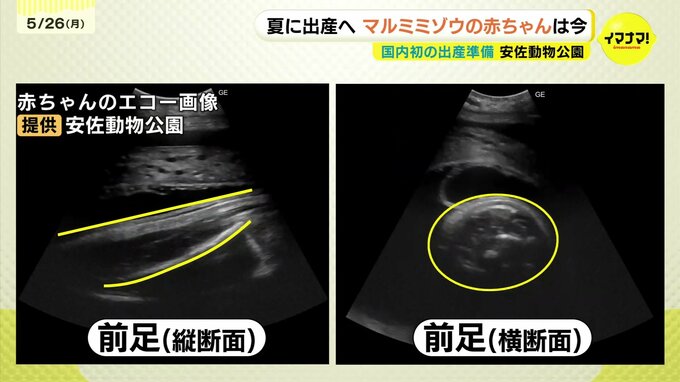 エコー画像からは「頭の骨」と「前足の断面」が確認できました。
