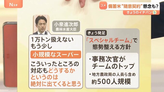“不公平感”という点については、小泉大臣も「1万トン扱えない、もう少し小規模なスーパー、こういったところの対応をどうするかというのは絶対に出てくると思う」と話しています。