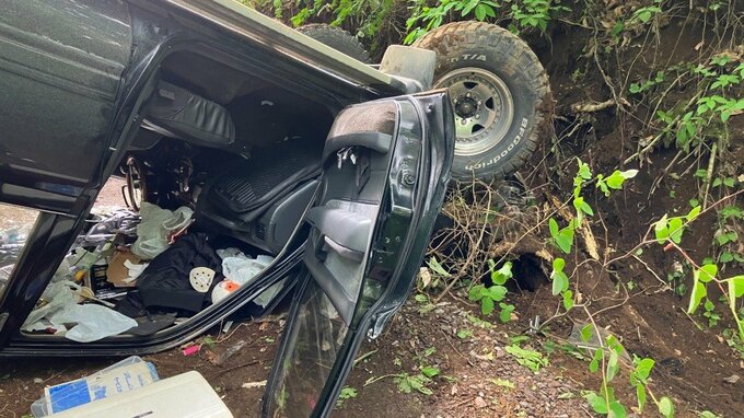 事故があったのは、函館市赤川の林道で、27日午前8時ごろ、RV車が横転しフロント部分が激しく壊れました。