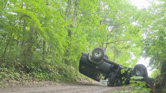 この男性はHBCの取材に対し、「林道脇の溝にハンドルを取られたことをきっかけに横転した」などと説明しています。
