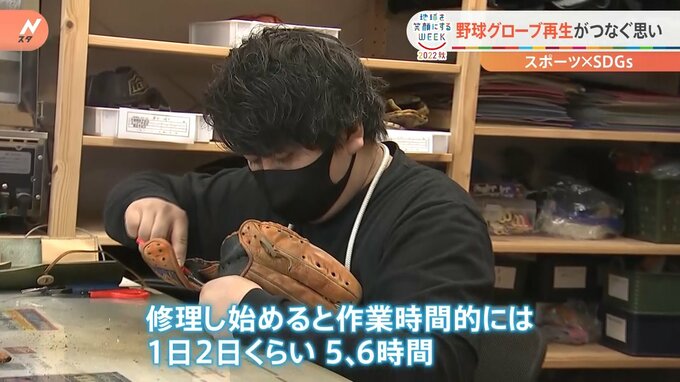 職人さん(大木 賢さん)が佳一朗くんの大切なグローブを蘇らせてくれます。