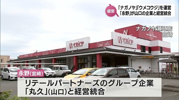 宮崎県内のスーパー「ナガノヤ」と「ウメコウジ」を運営する宮崎市の「永野」が、山口県の企業「丸久」と経営統合し、発行済み株式を譲渡することになりました。「永野」によりますと、経営統合するのは「リテール…