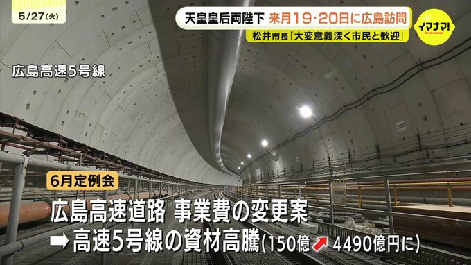 補正予算案としては▽北部地区学校給食センターの整備で、建設資材の高騰による増額分が計上されるほか、▽広島高速道路の整備計画で、全体事業費を変更する案が提案されます。高速5号線の建設資材が高騰したためで、150億円の増額となります。