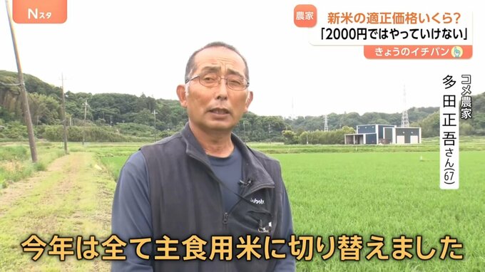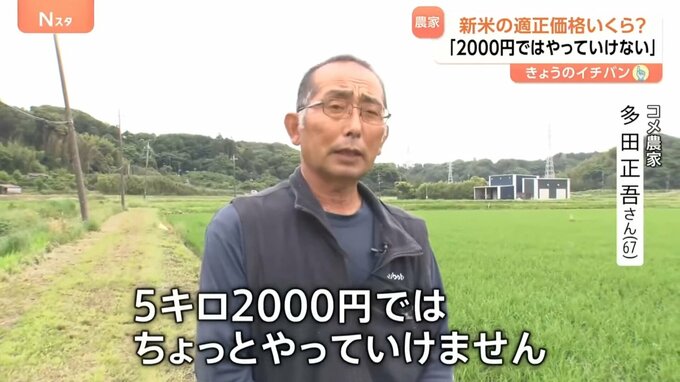 「5キロ2000円ではちょっとやっていけません。(新米価格は)高いに越したことはないんですが、消費者、自分が買うとしたら3000円~4000円の間で3500円。その程度が目安じゃないかと思うんですね」