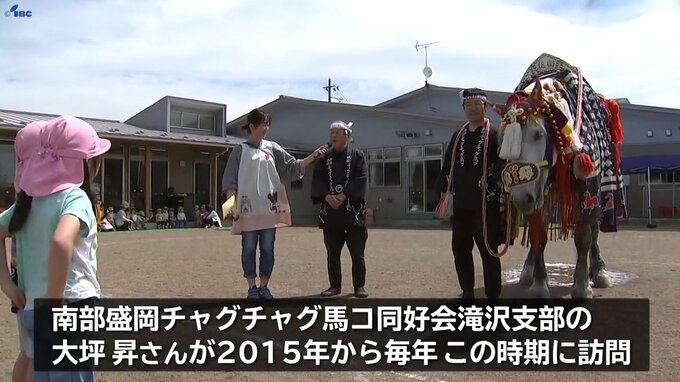 こちらの保育園には「南部盛岡チャグチャグ馬コ同好会滝沢支部」の大坪昇さんが、2015年から毎年この時期チャグチャグ馬コ本番を前に訪問しています。