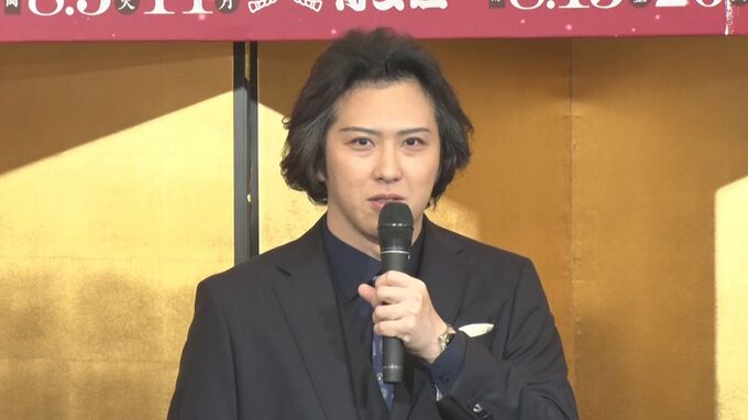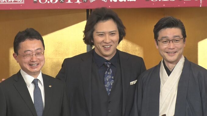 歌舞伎俳優の尾上松也さんが、舞台『刀剣乱舞』記者会見に、演出の尾上菊之丞さん、脚本の松岡亮さんと共に登壇しました。