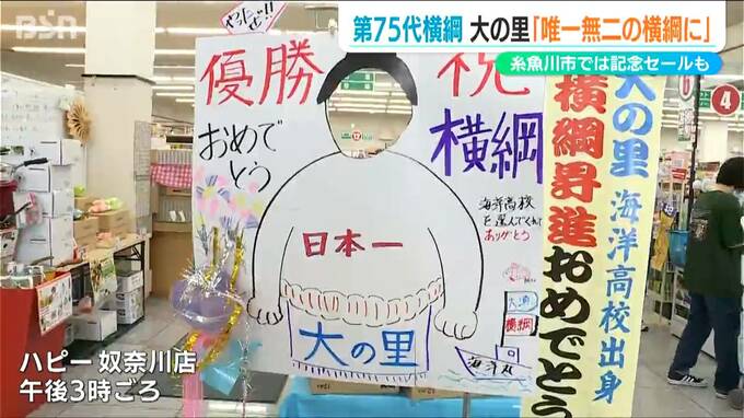「大の里が横綱75代に就任されたってことで、それに関連して75円セールを開催しています」