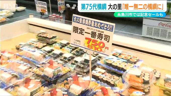 エビやサーモンなどの寿司は、9貫で通常およそ1000円のところ、“寿司好き”の大の里にあやかり750円に値下げされました。
