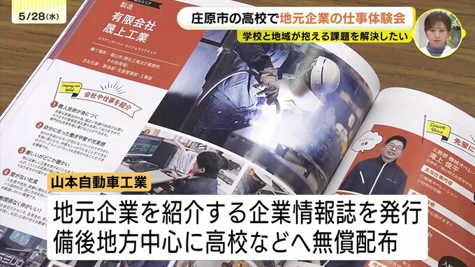 山本自動車工業は、6年前から高校生向けに地元企業を紹介する企業情報誌を発行。備後地方を中心に9つの市と町の高校など、およそ70校に7千冊ほどを無償で配布しています。