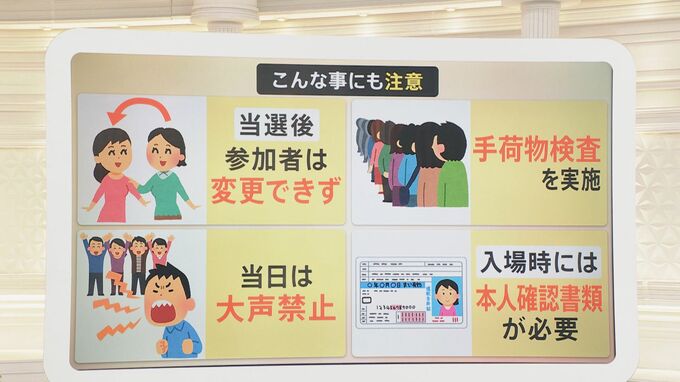 さらに、入場時には本人確認書類が必要となります。どんなものが必要なのかは当選してからしっかりと確認するようにしてください。