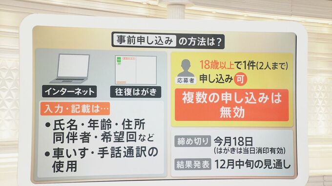 ■事前申し込みの方法は「インターネット」と「往復はがき」 複数申し込みは無効