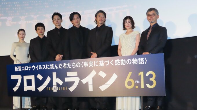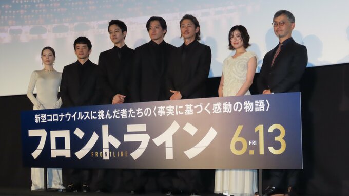 俳優の小栗旬さん、松坂桃李さん、池松壮亮さん、窪塚洋介さん、森七菜さん、桜井ユキさん、関根光才監督が映画『フロントライン』のジャパンプレミアに登場しました。