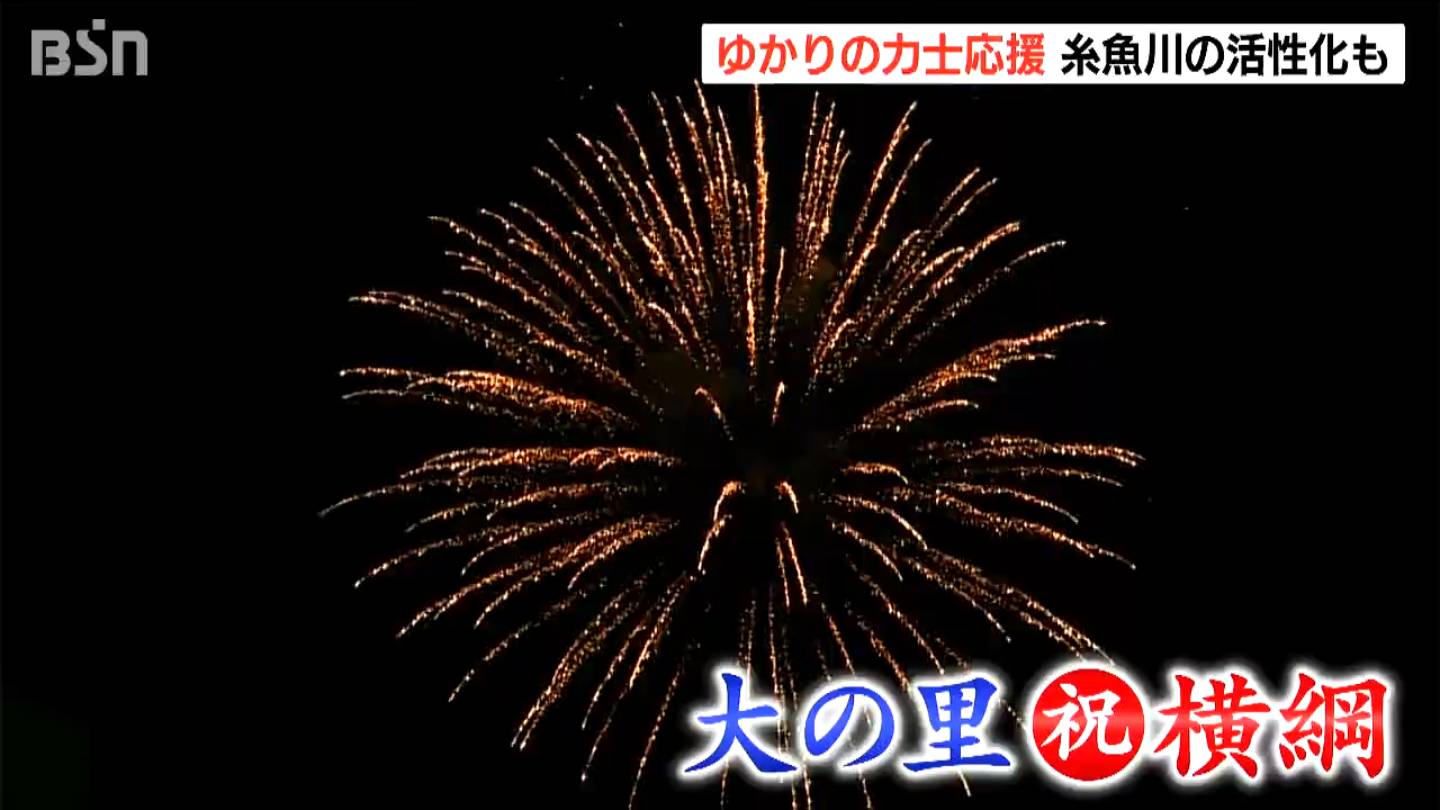 28日夜、大の里の横綱昇進を祝って花火が打ち上げられました。