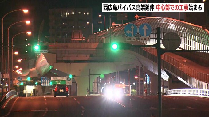 国道2号・西広島バイパスの広島市中心部への延伸に向け、28日夜から、新たな区間で工事が始まりました。西広島バイパスは、交通渋滞の緩和などを目的に、広島市西区の観音本町から中区平野町までの約2・3kmで高架…