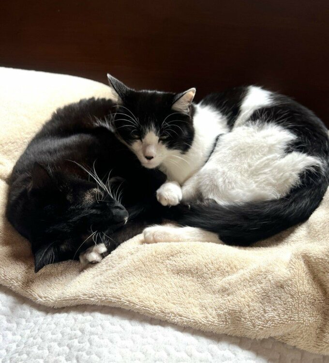 藤さんは、読者に健康への留意を呼びかけつつ、愛猫のオレオとマルのお昼寝姿を投稿。オレオが穏やかな目で「おかーさんよかったね」と言っているようです。