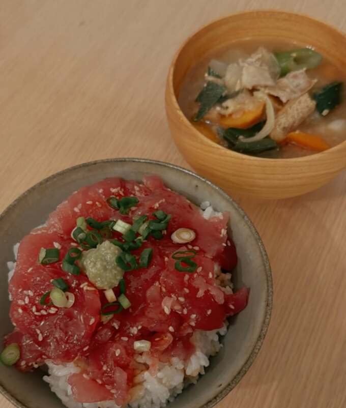 別の投稿では、赤身のマグロをたっぷりと盛った丼や香ばしい卵とじがかかった親子丼に香菜を飾り、ジューシーなチャーシューにカイワレを添えるなど、細部までこだわった盛り付けが見られます。