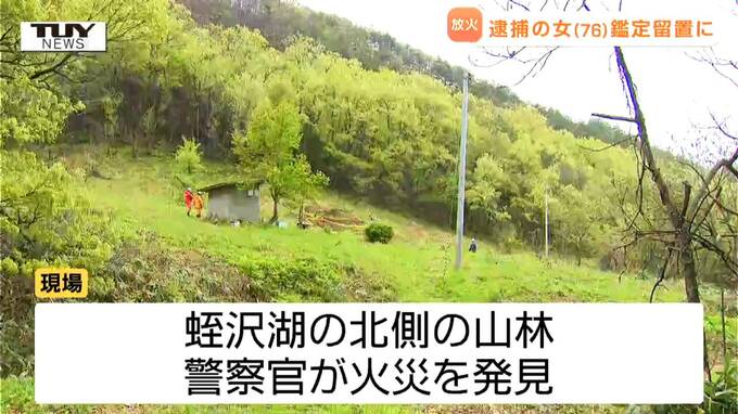 現場は蛭沢湖の北側の山林で、パトロール中の警察官が火災を発見し、現場付近にいた女に職務質問をして任意同行を求めていました。
