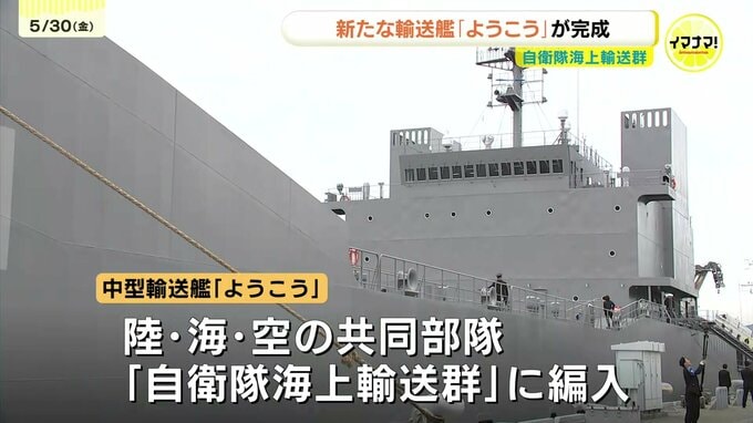 陸・海・空の共同部隊「自衛隊海上輸送群」に新たな輸送艦が完成しました。母港となる海上自衛隊呉基地に30日、引き渡されたのは中型輸送艦「ようこう」です。「ようこう型」輸送艦の1番艦として30日に就役し、3月…