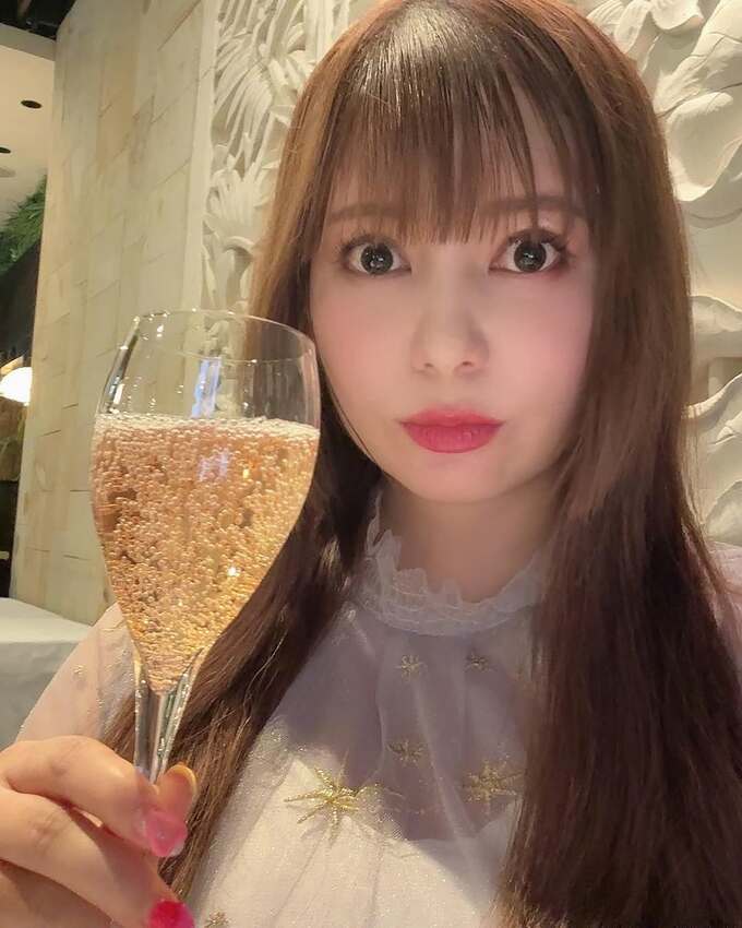 ワイングラスに泡の出る飲み物を満たしたゴージャスな写真にも「もちろんノンアルコール」と注釈をいれ、「美容もあきらめずがんばるよ!」と前向きな姿勢を見せています。