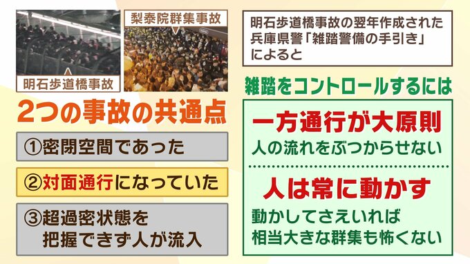 ーー二つ目の理由「対面通行になっていた」点、『兵庫県警の雑踏警備の手引き』によりますと、雑踏をコントロールするには『一方通行が大原則』『人を動かす』などの事が必要とされていますが現場でそれができていなかったということですか?