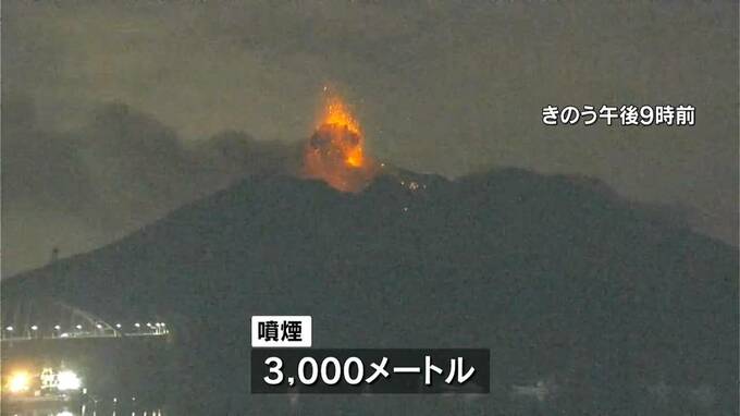 桜島で30日夜、爆発的噴火があり噴煙が3000メートルの高さまで上がりました。気象台は「今後も活発な噴火活動が継続する」としています。桜島の南岳山頂火口で30日午後9時前に爆発がありました。噴煙は火口から300…