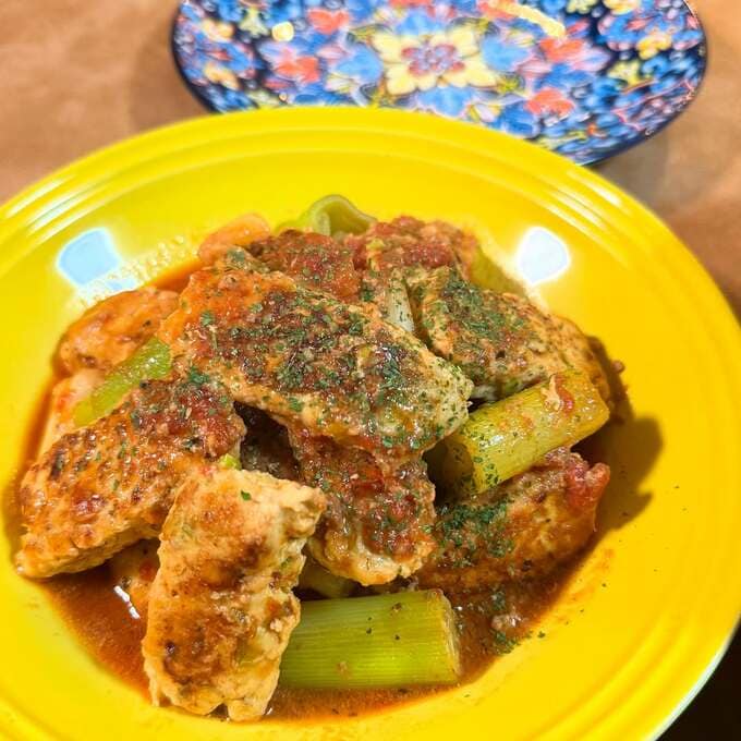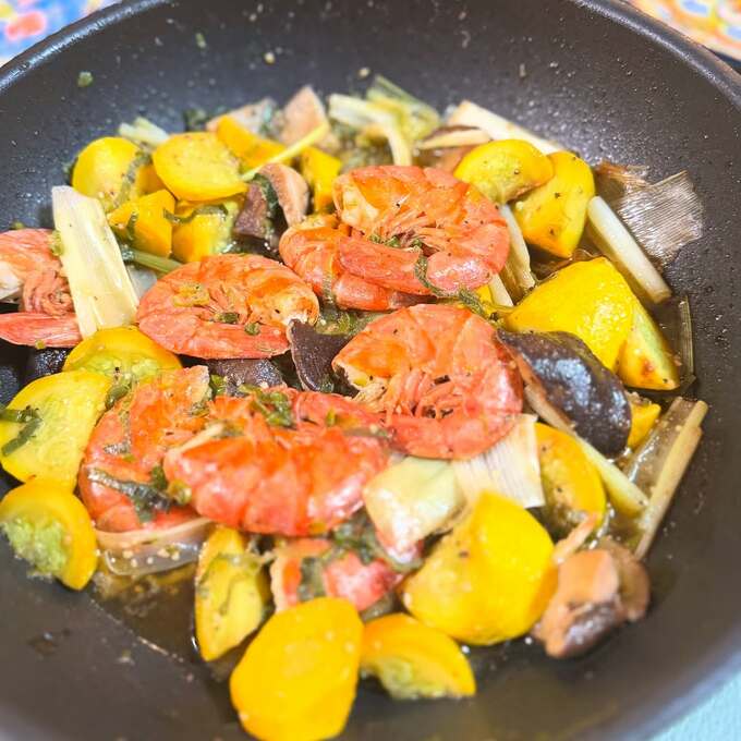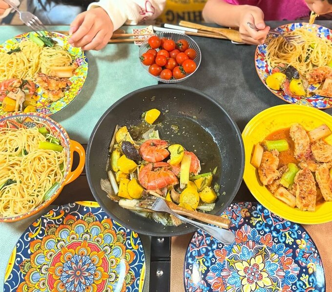 続く、翌日のインスタグラムでは、「ネギアレンジ初日」と、書き出し、「#青ネギ部分の刻みと白ネギ部分をミックスして野菜ゴロゴロガーリックシュリンプ風」「#鶏ひき肉とみじん切りネギのチキンステック風をネギと共にトマト煮込みへ」「#エビ出汁フル活用でシンプルパスタ」と、ふんだんにネギを使った3種の料理を披露しました。