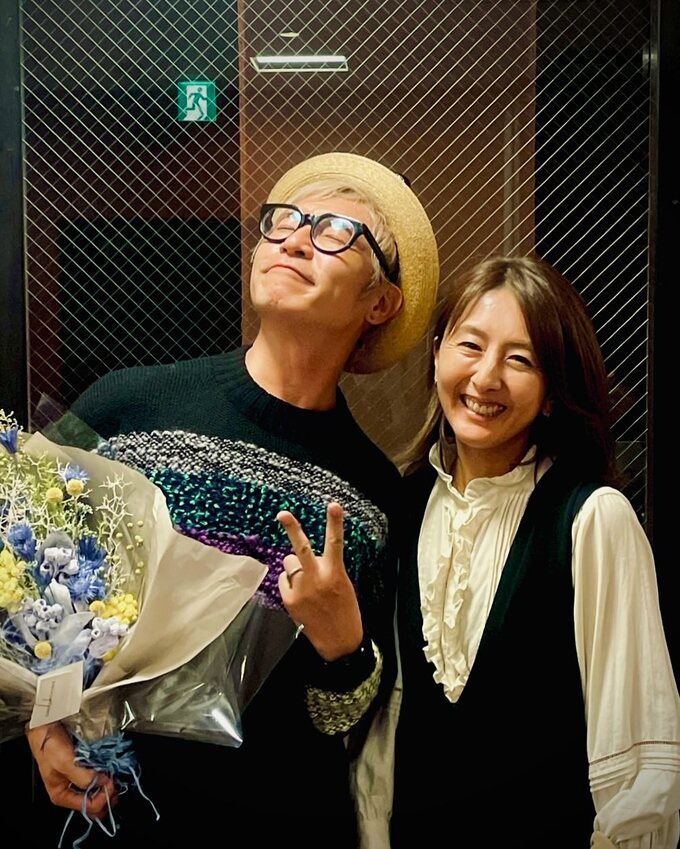 続く写真では、妻の美紀さんと喜びの2ショットを披露。満面の笑みの美紀さんのそばで、ピースサインを出すつるのさんはうっとりした表情で花束を抱えています。つるのさんは「どうですか?」「早く冬来ないかなあ」と、美紀さんによるセーターにご満悦の様子。フォロワーからはたくさんの祝意と、庄司智春さんの「美紀ティーー!!!!」が寄せられています。