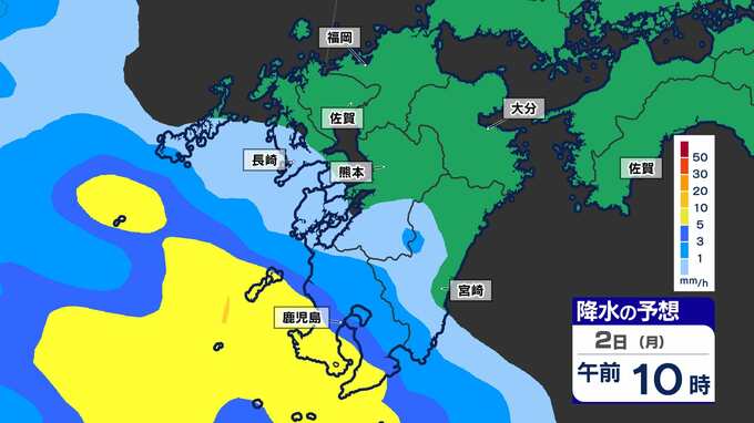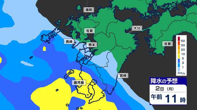 【あす朝 必ず傘を持って】九州北部の梅雨入りは? 宮崎・鹿児島は警報級大雨のおそれ【雨のシミュレーション2日(月)~3日(火)】福岡・佐賀・長崎・大分・熊本・宮崎・鹿児島 南日本放送 2025年6月1日(日) 19:00 国内 天気 雨のシミュレーション2日(月)~3日(火) 九州南部は2日(月)朝から、九州北部では2日(月)昼頃から雨になりそうです。朝出かけるときに、雨が降っていなくても必ず傘を持って出かけましょう。雨のシミュレーションは、画像で確認できます。