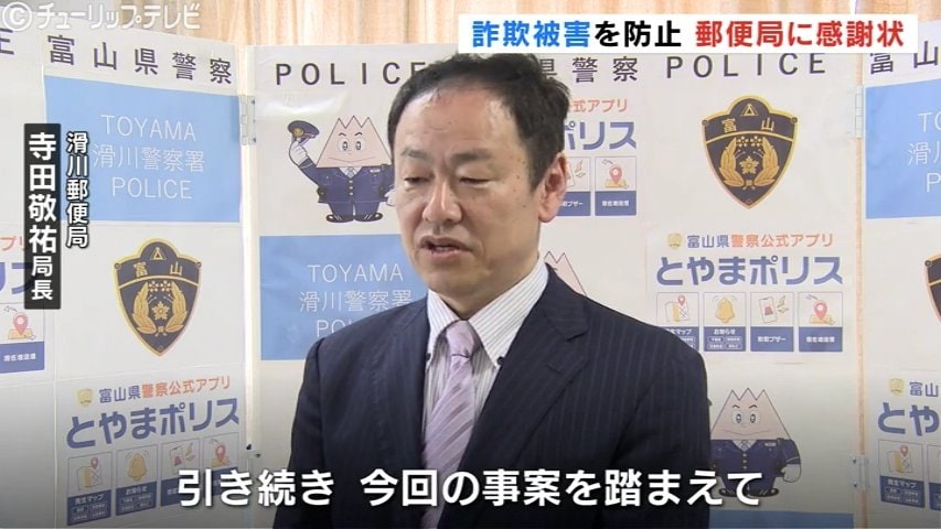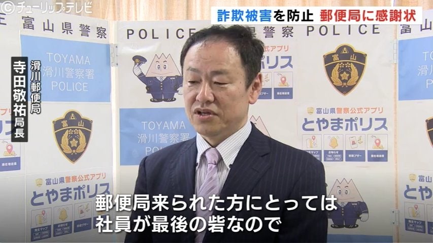 滑川郵便局 寺田敬祐局長「郵便局に来られた方にとっては社員が最後の砦なので引き続き今回の事案を踏まえて特殊詐欺がなくなるようにしっかりと取り組んでいきたい」