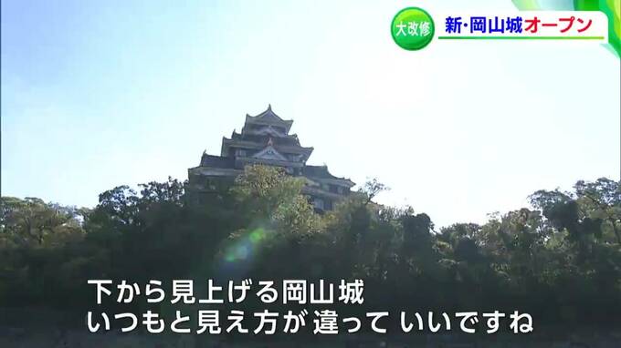 令和の大改修を終えた岡山城がきょう(3日)リニューアルオープンし、大勢のの来場客が詰めかけました。また周辺では様々なイベントが行われるなど、岡山城を中心に新たな賑わいが生まれようとしています。漆黒の外壁と金の鯱が見るものを圧倒するシン・岡山城。岡山のシンボル「烏城」の新たな門出の日です。