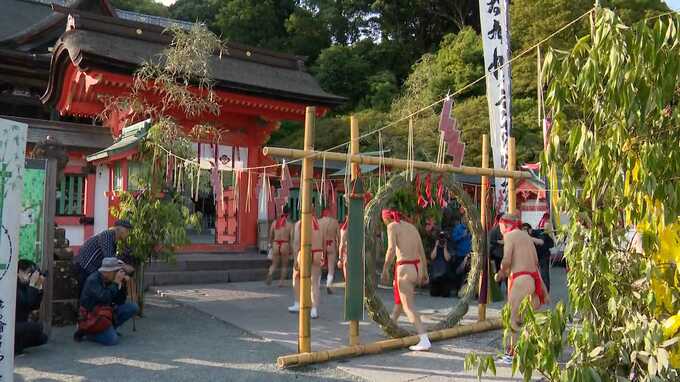 赤いふんどし姿で無病息災などを祈願する恒例の「へこかき祭り」が1日、福岡県久留米市で開催されました。