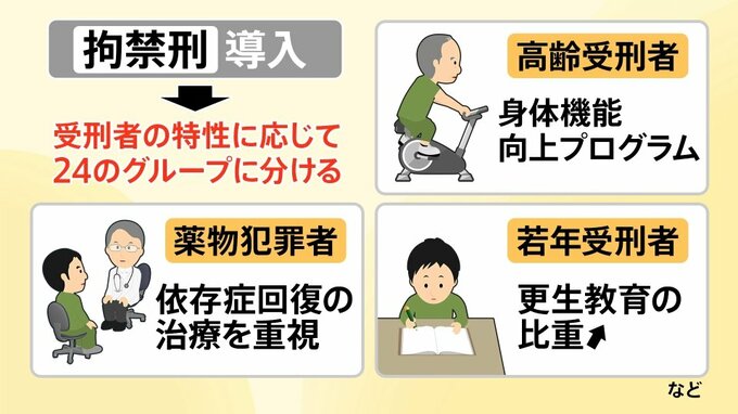拘禁刑導入によって、受刑者の特性に応じて、24のグループに分けて対応されるということです。