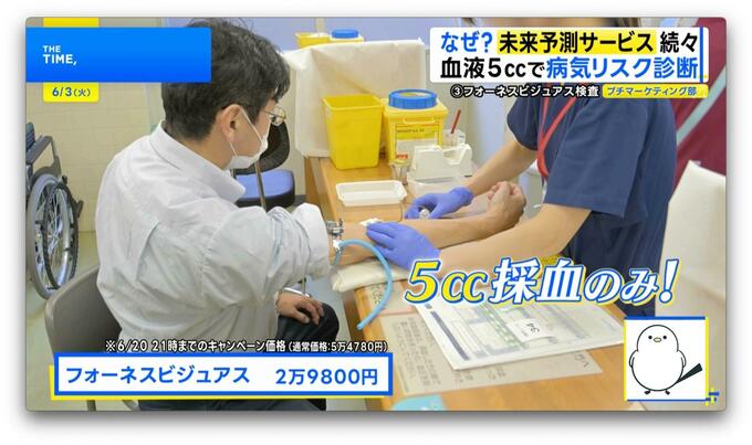 『フォーネスライフ株式会社』(東京・中央区)が手掛ける「フォーネスビジュアス」の検査に必要なのは5cc、なんと小さじ一杯分の採血のみ。