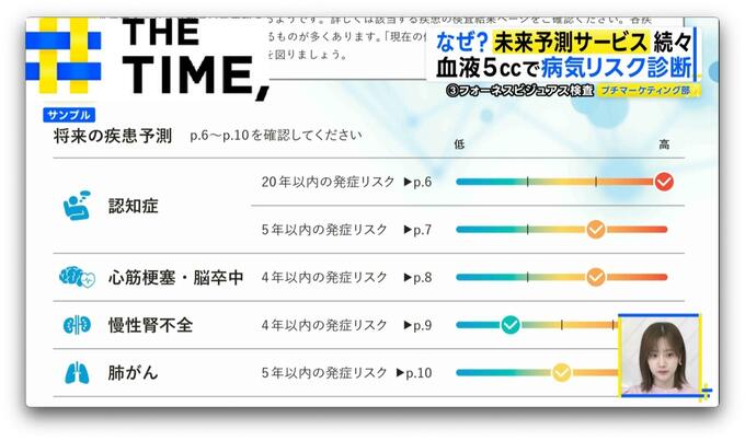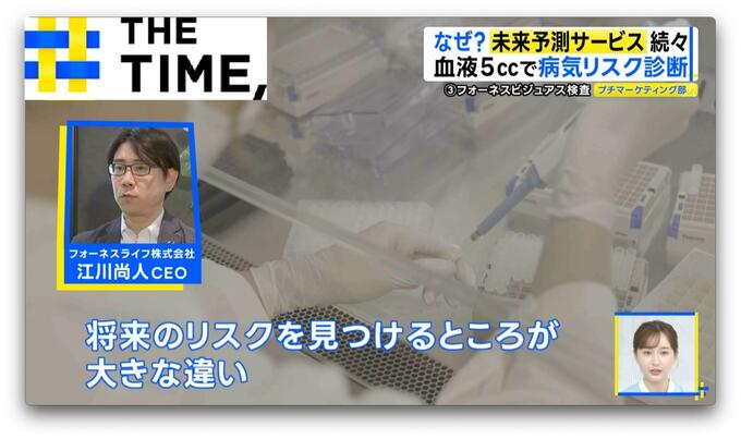 「健康診断や血液検査は“今の病気”を見つける検査が主流かなと。我々は早期発見ではなくてその前に、“もっと早く将来のリスクを見つける”というところが大きな違い」