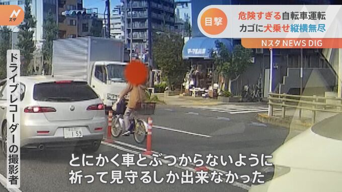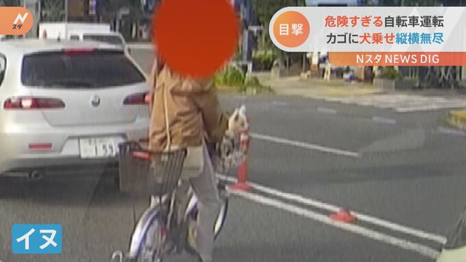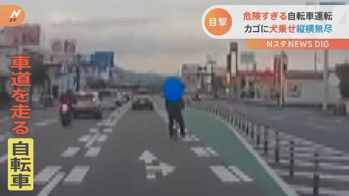 都内で自転車の取り締まりが厳罰化されましたが、危険な走行が後を絶ちません。車道の真ん中を堂々と走行する自転車に、かごに犬を乗せたまますり抜ける自転車。大惨事につながりかねない危険な走行です。