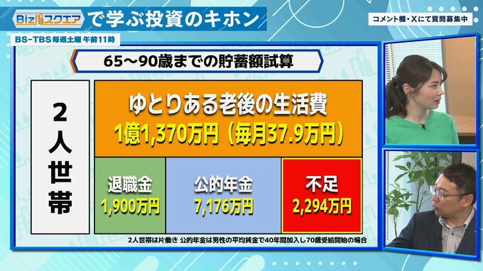 「退職金や企業年金は、大卒大学院卒の平均で1900万円。公的年金は、1人が厚生年金で1人は国民年金の場合の平均。65歳ではなく70歳から受け取った場合の手取りベースで7000万円ぐらい。それでも【2300万円ほど足りない】。これが、6年前の“2000万円問題”と同じ意味。その後物価が上がっているので、直近では“2300万円問題”に悪化している」