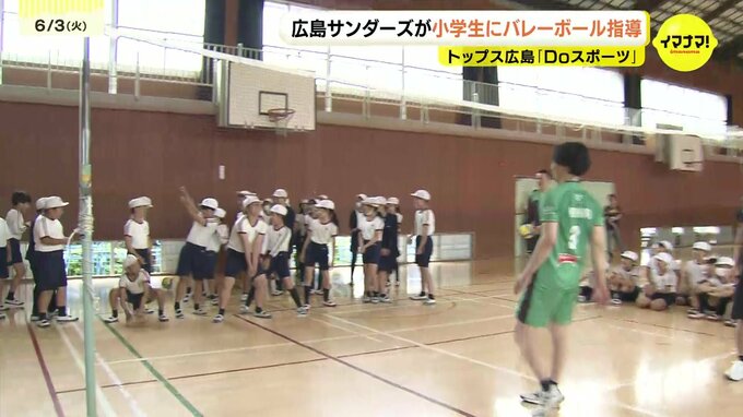 広島サンダーズの選手たちが、広島市内の小学生とふれあい、バレーボールの魅力を伝えました。