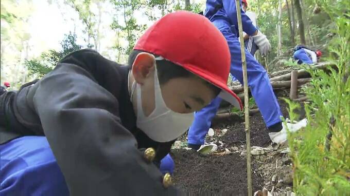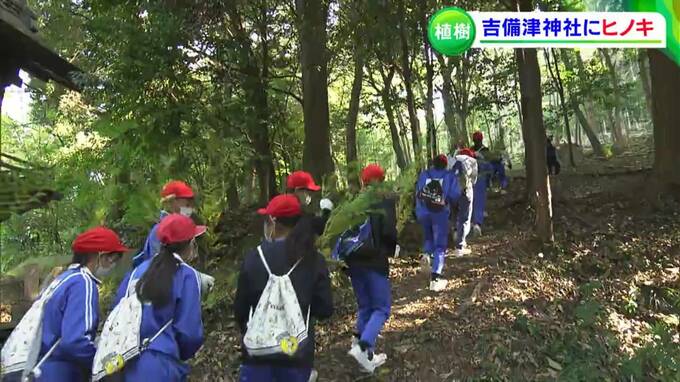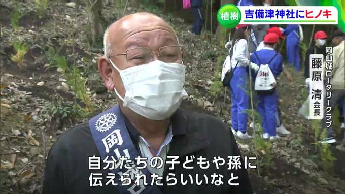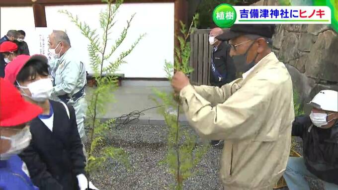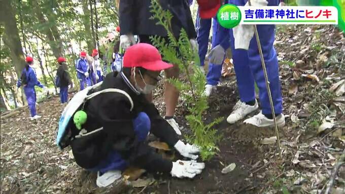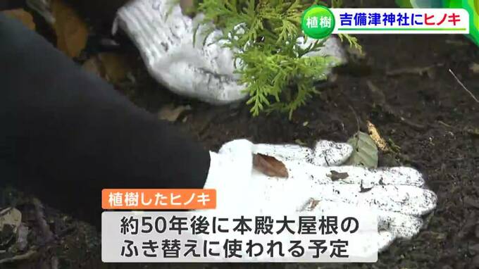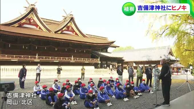 森林保全と地域の文化財を守る取り組みです。岡山市北区の吉備津神社で、約50年後の修繕に使われるヒノキの植樹が行われました。