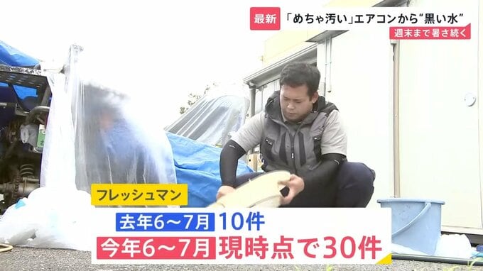 エアコン清掃業者「フレッシュマン」では、6~7月にかけて、清掃の依頼が去年の倍以上入っているそうです。