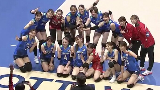 第3セットの終盤にチーム最年少、秋本美空(18)が登場。スパイクを決め切りセットポイントを奪う堂々のシニア代表デビューを果たした。