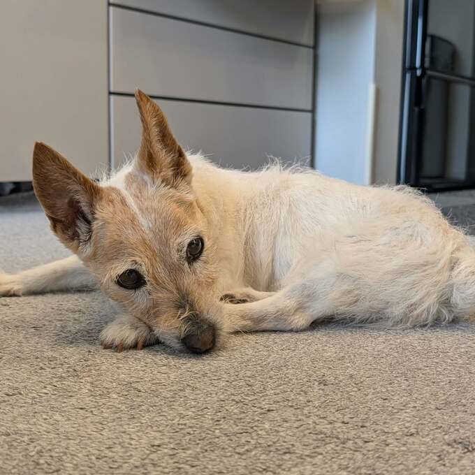 そして前足と後ろ足が大人しくたたまれ、うつぶせになってボックスの中に横たわっている模様。愛犬「テン」がお昼寝している様子であるように見えます。照英さんは「愛娘8歳が絵画教室で描いてきた作品がこれだ!」と、19歳を越えたテンの絵を紹介。やさしく鷹揚な筆致で娘が描いたテンの姿に、「愛犬テンへの想いが伝わる」と娘とテンの両方への親バカを炸裂させています。
