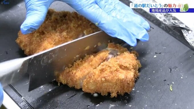 大東町で生産する「やまと豚」を同じく大東町でつくられた菜種油を使ってムラにならないよう、全体的にきつね色になるまで6分ほど揚げています。