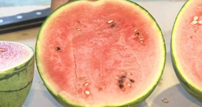 皮のギリギリまで果肉が詰まった「金沢こだま西瓜」今季初出荷 北陸放送 2025年6月5日(木) 17:19 国内 早くも夏の味覚がお目見えです。金沢特産のこだま西瓜の出荷が5日から始まりました。 みずみずしくギュッと中身が詰まった「金沢こだま西瓜」 1玉まるごとでも冷蔵庫に収まりやすいサイズで、皮のギリギリまで果肉が詰まっているのが特徴です。