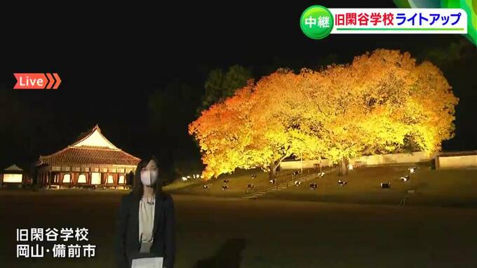 岡山県備前市の旧閑谷学校で、あす(5日)から「秋のライトアップ」が行なわれます。「国宝の講堂」と「2本の楷の木」が織りなす絶景を、試験点灯が行なわれている現場から中継でお伝えします。