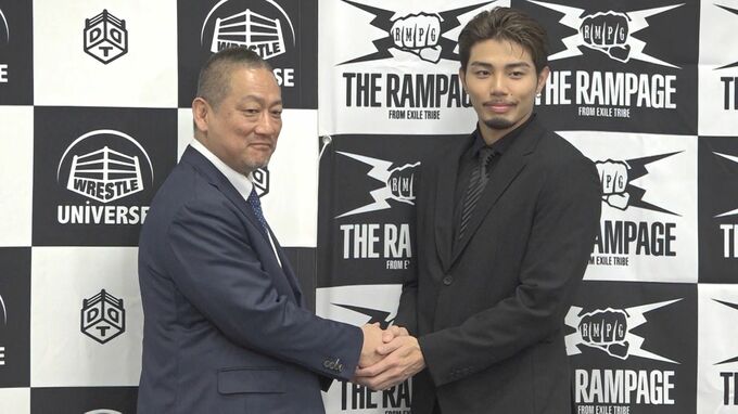 去年2月にプロレスデビューを果たした、THE RAMPAGEの武知海青さんが、プロレスラーとしてDDTに入団することを発表。入団発表記者会見が行われ、武知さんのほか、上野勇希選手らが登壇しました。武知さんは、LDH JAPAN所属のまま、プロレス活動においてDDTとエージェント契約を結ぶことになります。