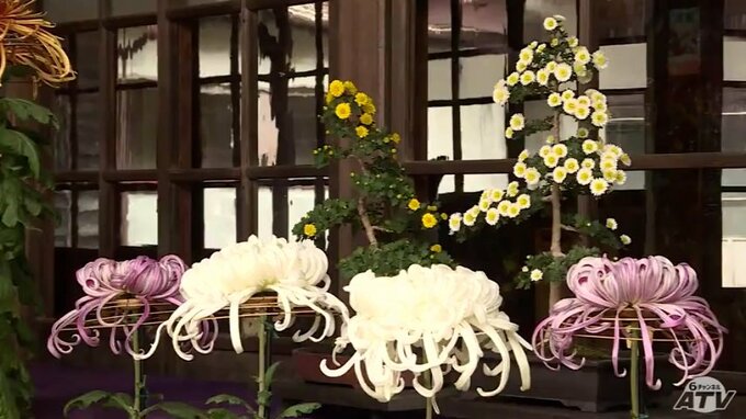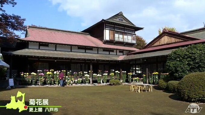 愛好家たちが育てたキク120鉢が展示されている菊花展(きっかてん)は、青森県八戸市にある国の登録有形文化財・更上閣(こうじょうかく)を会場に指定管理者の三八五交通が毎年この時期に開催して、今年で6回目となります。